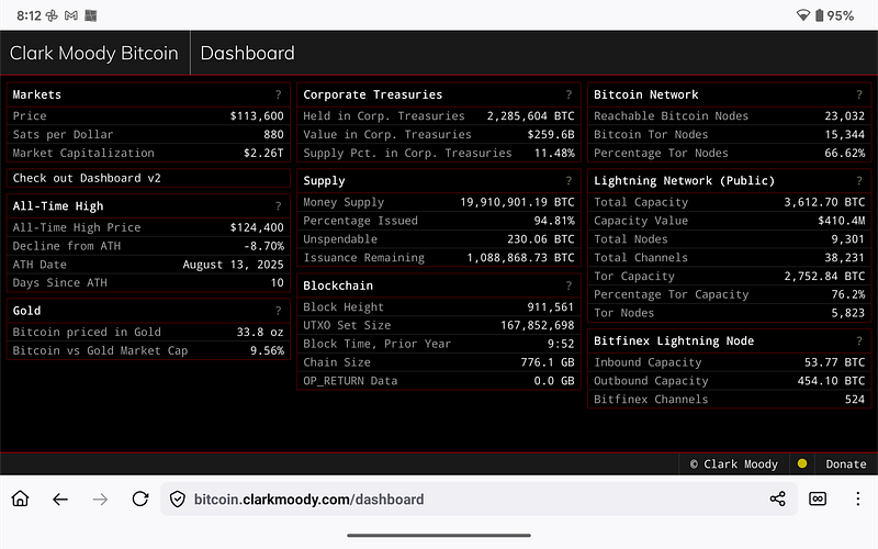 Lightning Network: has a capacity of 3,612 BTC, which is valued at $410 million, distributed across 9 channels and 301 nodes.