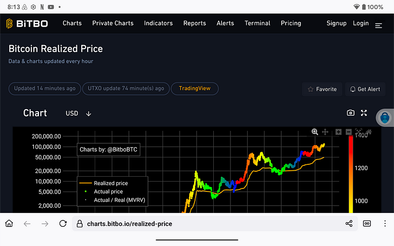 The realized price currently trades at approximately half of its spot value, precisely where mid-cycle runs typically anchor. When the actual price diverges too far above the realized price, risk spikes; today we’ve still got room to run.