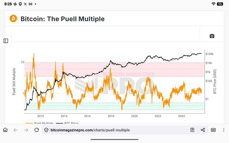 The Puell Multiple, a proxy for miner income relative to the historical average, also signals restraint. It sits below the red overheat zone, with miners not showing signs of capitulation or excessive profit-taking.