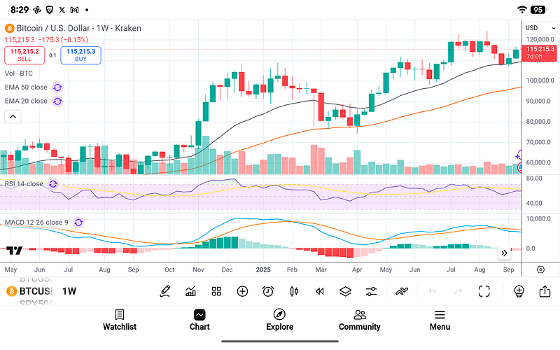 At the time of this report, Bitcoin is trading at $115,215, having pulled back 7.4% from its August 13th all-time high of $124,400. The CBBI Confidence Score sits at 75, suggesting we remain in the final third of the historical bull run model—but not yet at euphoria.