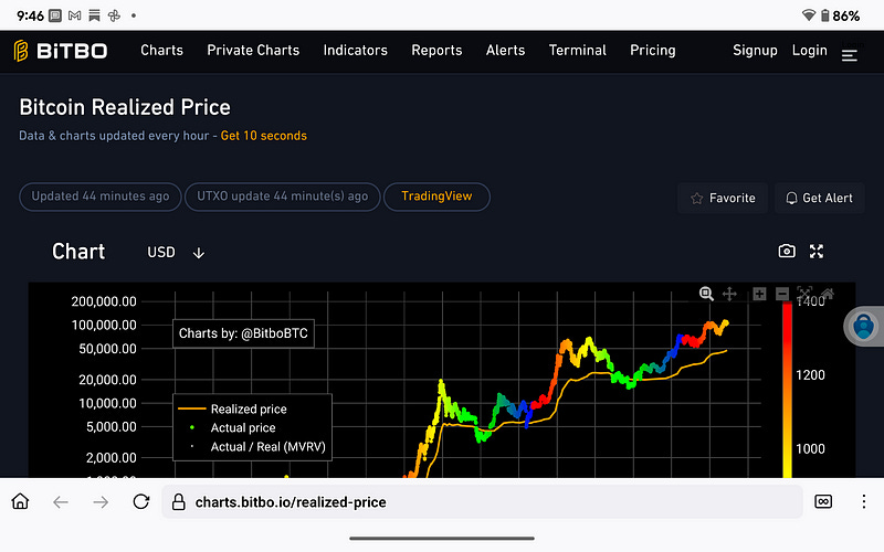 Realized Price vs. Market Price (Bitbo.io)
