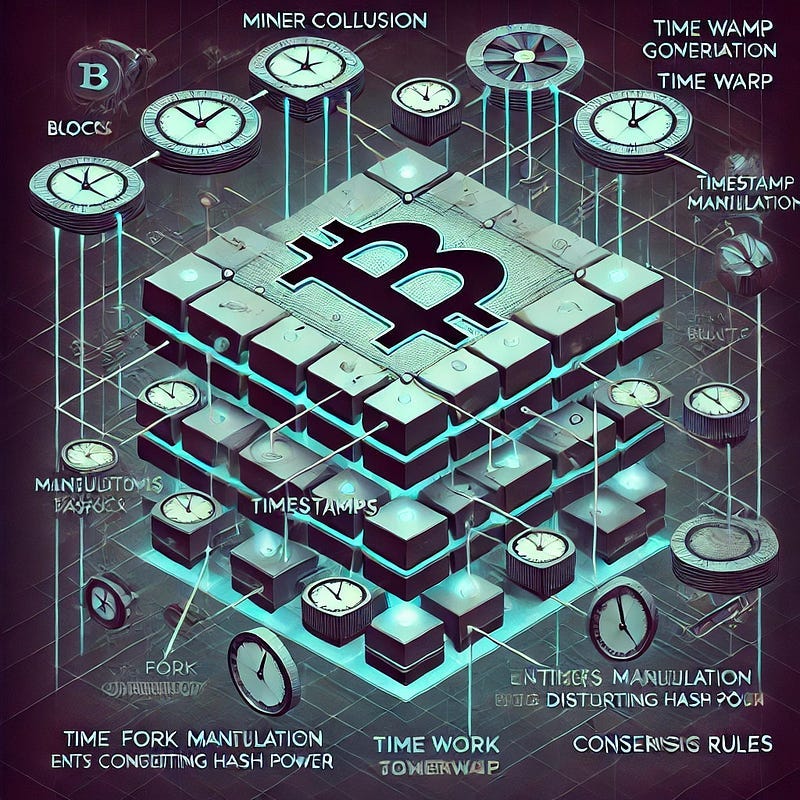 Bitcoin’s difficulty adjustment relies on block timestamps. Miners can manipulate timestamps to skew the adjustment algorithm, either slowing or speeding up difficulty recalibration.