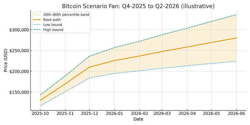 Extension case: If institutional spot demand persists and DXY stays capped, the cycle can stretch into Q2 2026, with a measured path to $280k.