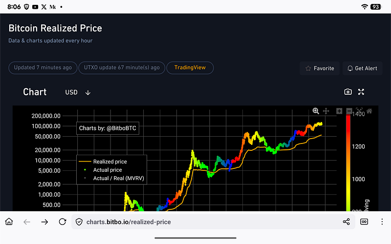 Realized Price keeps stepping higher—network cost basis is ratcheting up, creating a rising structural floor.
